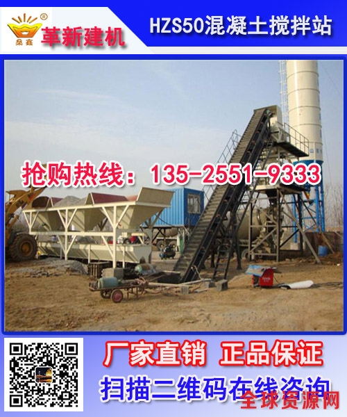 中国领先的混凝土搅拌站设备生产厂家-郑州革新混凝土搅拌站设备有限公司,生产的每小时搅拌50方混凝土的高配型HZS50混凝土搅拌站价格报价42万元,低配型HZS50搅拌站价格报价12万元。备注:高配HZS50混凝土搅拌站采用皮带机上料,全自动控制系统,低配型50搅拌站采用提升料斗上料。
